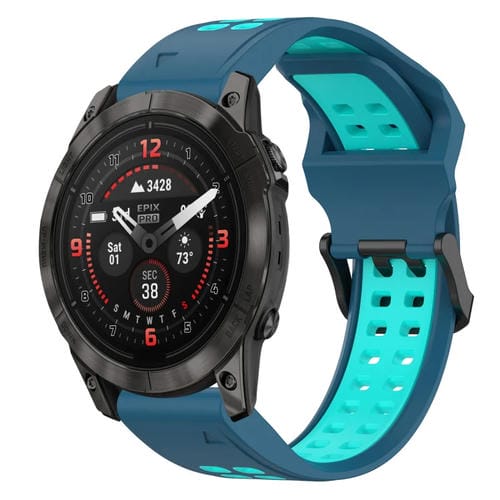 Correa de Reloj Garmin Epix Pro 42mm 20mm Silicona Hebilla Inversa Dos Colores (Azul + Verde Azulado)