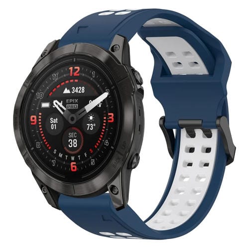Correa de Silicona para Garmin Epix Pro 47mm 22mm con Hebilla Inversa Dos Colores (Azul + Blanco)