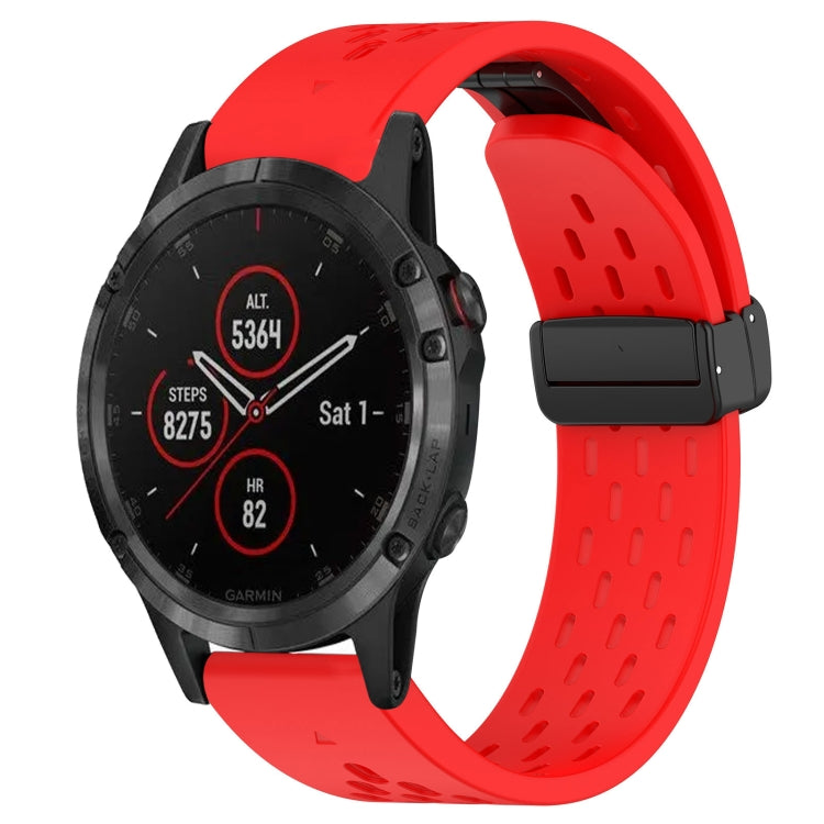 Correa de Reloj Garmin Fenix 5 de silicona con orificio y hebilla plegable 22mm (Rojo)