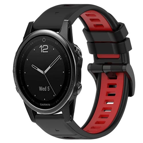 Correa para Garmin Fenix 5S 20mm Silicona Deportiva Bicolor (Negro + Rojo)