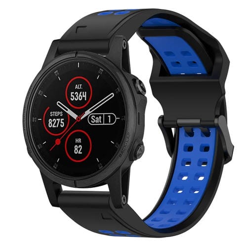 Correa de Reloj Silicona para Garmin Fenix 5S Plus 20mm con Hebilla Inversa (Negro + Azul)