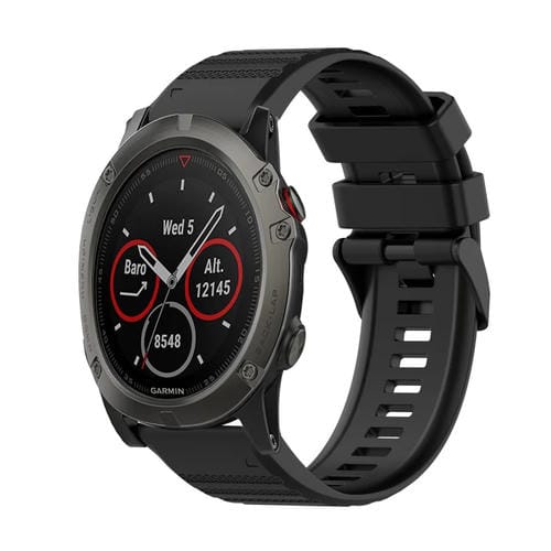 Correa de Silicona para Garmin Fenix 5X Plus 26mm con Textura Horizontal y Herramienta de Extracción (Negro)