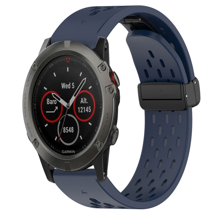 Correa de Reloj de Silicona para Garmin Fenix 5X Sapphire 26mm con Orificio y Hebilla Plegable (Azul Medianoche)