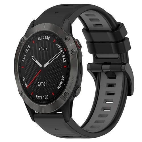 Correa de Silicona para Garmin Fenix 6 Sapphire GPS 22mm Sports Bicolor (Negro + Gris)