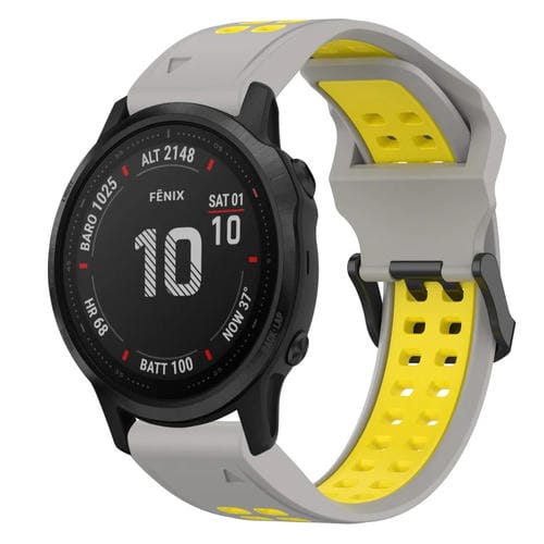 Correa de Reloj silicona para Garmin Fenix 6S Pro 20mm con hebilla inversa dos colores (Gris + Amarillo)