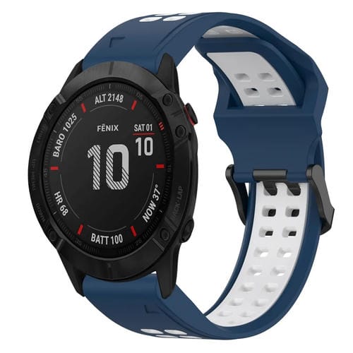 Correa de Silicona para Garmin Fenix 6X Pro 26mm con Hebilla Inversa Dos Colores (Azul + Blanco)