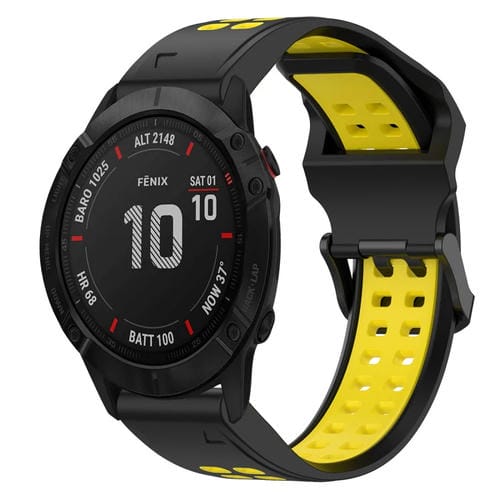 Correa de Silicona para Garmin Fenix 6X Pro 26mm con Hebilla Inversa Dos Colores (Negro + Amarillo)