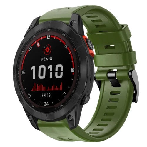 Correa de Reloj para Garmin Fenix 7 de Silicona con Hebilla de Metal Solar (Verde Militar)