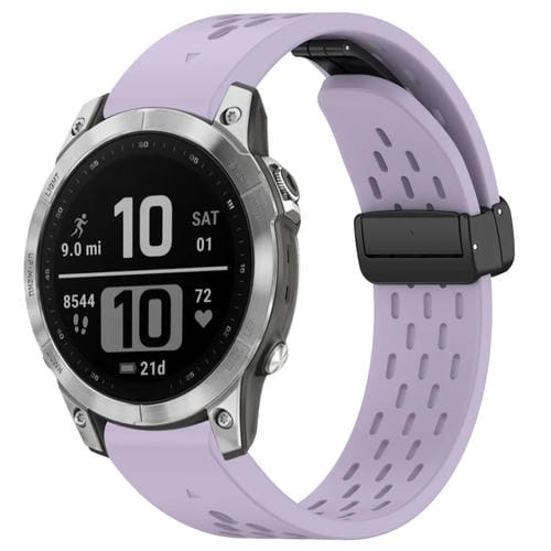 Correa de Silicona para Garmin Fenix 7 y Fenix 7 Pro con Hebilla Plegable Magnética y Orificios 22mm (Púrpura)