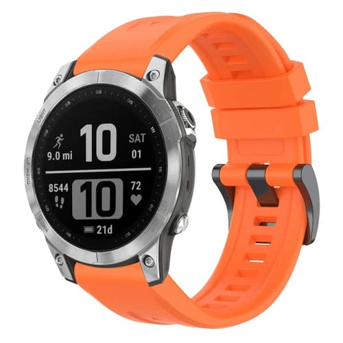 Correa de Silicona para Garmin Fenix 7 Pro con Hebilla Negra y Liberación Rápida (Naranja)