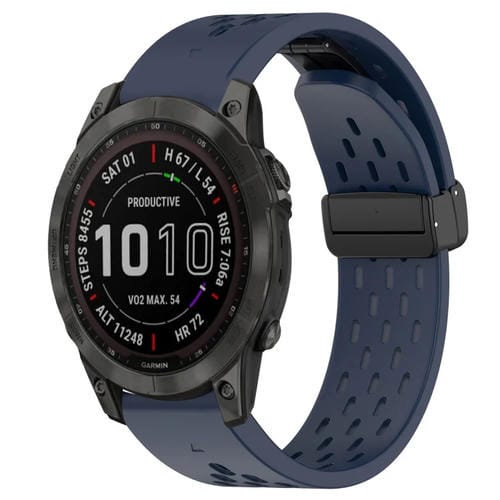 Correa de Reloj Silicona para Garmin Fenix 7 Sapphire Solar 22mm con Orificio y Hebilla Plegable (Azul Medianoche)