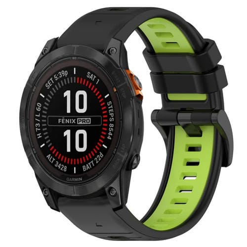 Correa de silicona para Garmin Fenix 7X 26mm Sports dos colores (Negro y Verde Lima)