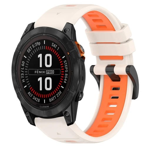 Correa de silicona para Garmin Fenix 7X Solar 26mm deportiva bicolor (Starlight + Orange)