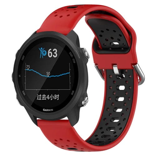 Banda de Reloj para Garmin Forerunner 245 20mm Silicona Transpirable Dos Colores (Rojo + Negro)