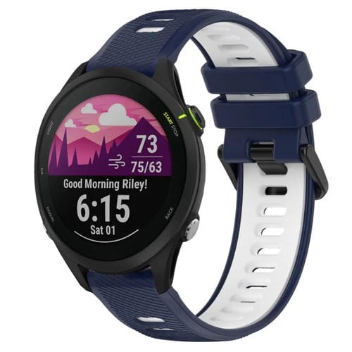Correa para Garmin Forerunner 255 22mm Silicona Deportiva Bicolor (Azul Medianoche + Blanco)