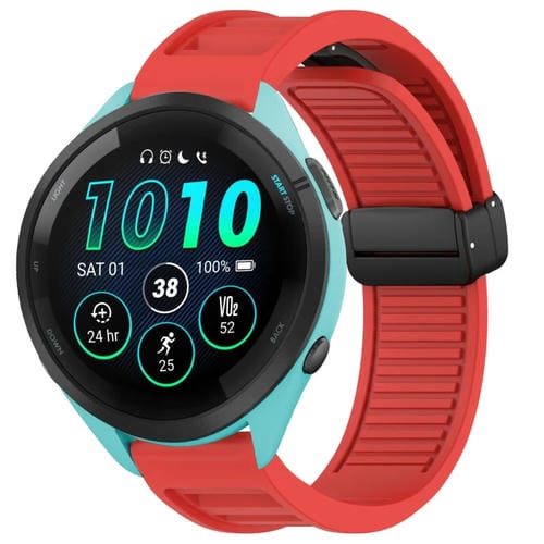 Correa de Reloj para Garmin Forerunner 265 de Silicona con Hebilla Magnética Plegable 22mm (Rojo)