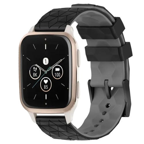 Banda de Reloj Garmin Forerunner Sq2 Music 20mm silicona patrón fútbol (Negro + Gris)