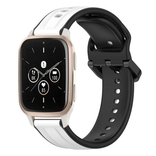 Banda de Reloj Silicona para Garmin Forerunner Sq2 Music con Bucle Convexo 20mm (Blanco + Negro)