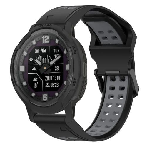 Para Garmin Instinct Crossover 22mm Correa de Reloj de Silicona con Hebilla Inversa de Dos Colores (Negro + Gris)