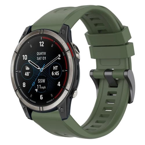 Correa de Silicona para Garmin Quatix 7 Pro con Hebilla Negra y Liberación Rápida (Verde Oscuro)