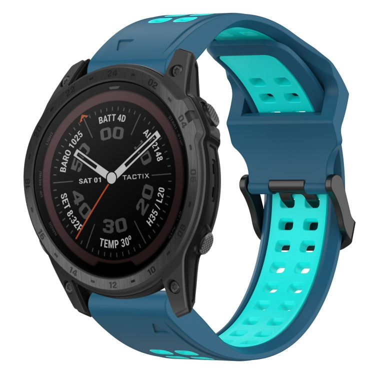 Correa de Reloj Garmin Tactix 7 Pro 26mm Silicona Hebilla Inversa Dos Colores (Azul + Verde Azulado)