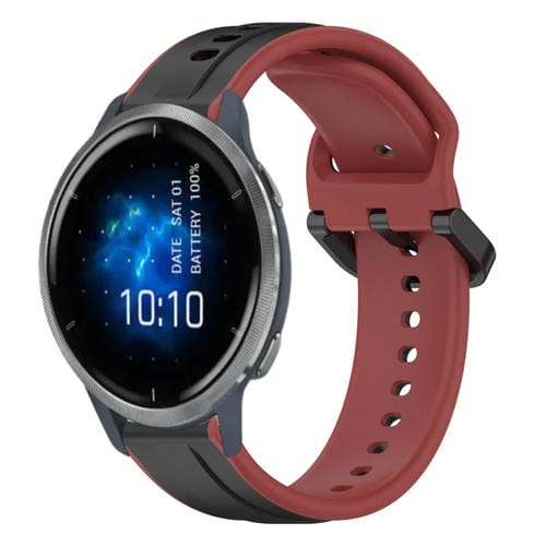 Correa de silicona para Garmin Venu 2 con bucle convexo de 22mm (Negro + Rojo)