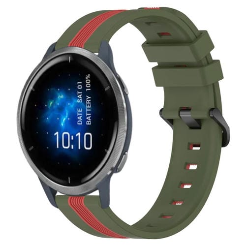 Correa de Silicona para Garmin Venu 2 22mm Dos Colores Vertical (Verde Militar + Rojo)
