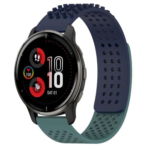 Correa de Silicona para Garmin Venu 2 Plus 20mm con Puntos 3D Transpirables (Azul Medianoche + Verde Oliva)