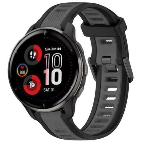 Correa de Reloj para Garmin Venu 2 Plus Silicona Texturizada Dos Colores 20mm (Gris + Negro)