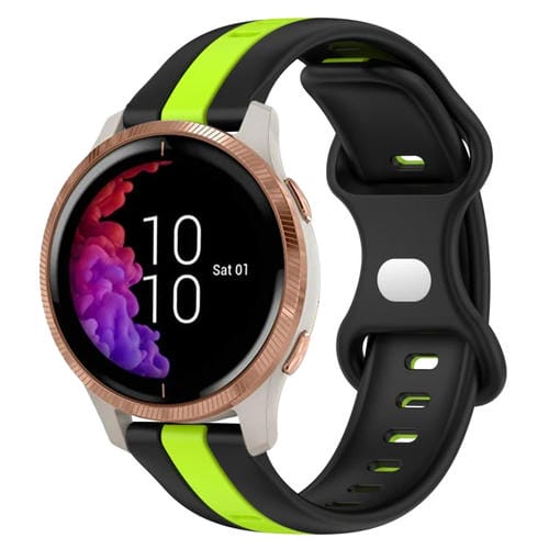 Correa de Reloj para Garmin Venu Silicona Dos Colores con Hebilla de Mariposa 20mm (Negro + Verde)