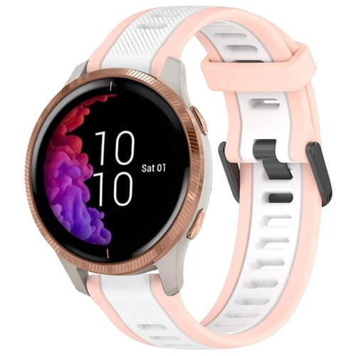 Para Garmin Venu Correa de Reloj de Silicona Texturizada de Dos Colores de 20mm (Blanco + Rosa)