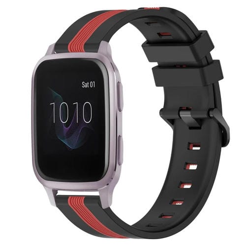 Correa de Reloj para Garmin Venu Sq Silicona Dos Colores Vertical 20mm (Negro + Rojo)