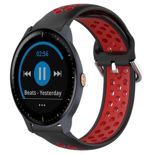 Banda de Reloj para Garmin Vivoactive 3 Music 20mm Silicona Deportiva Transpirable Perforada (Negro Rojo)