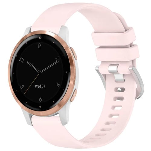 Para Garmin Vivoactive 4S Correa de Reloj de Silicona con Hebilla Plateada Líquida Brillante (Rosa)