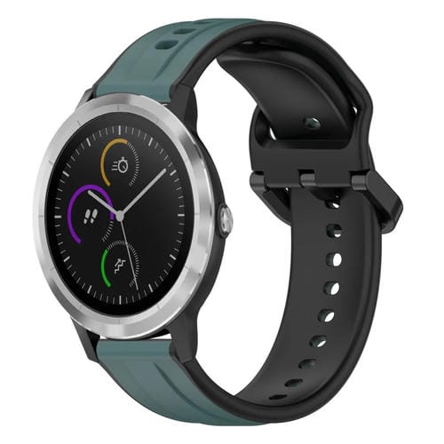 Correa de Silicona para Garmin Vivoactive3 con Bucle Convexo de 20mm (Verde Oliva + Negro)