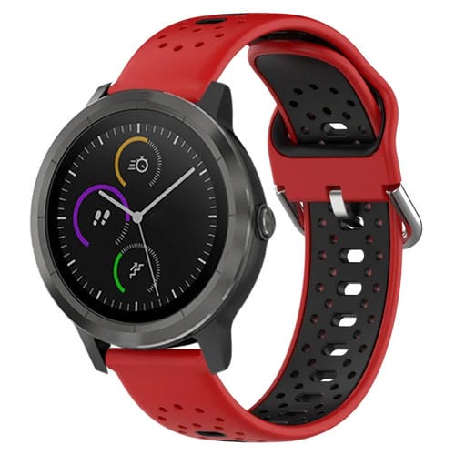 Correa de Silicona para Garmin Vivoactive3 20mm Dos Colores Transpirable (Rojo + Negro)