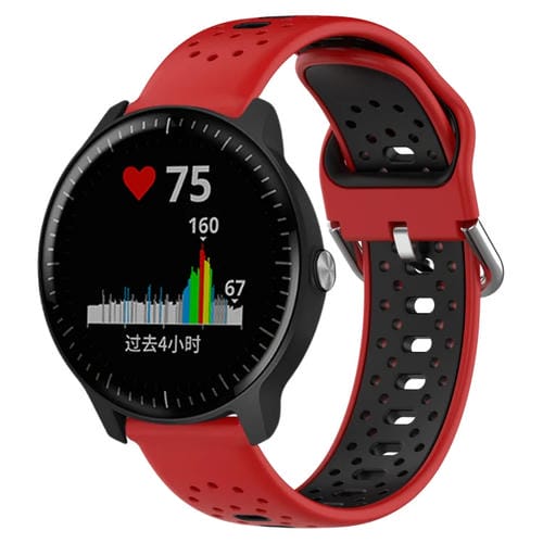 Banda de Reloj de Silicona para Garmin Vivoactive3 Music 20mm Dos Colores Transpirable (Rojo + Negro)