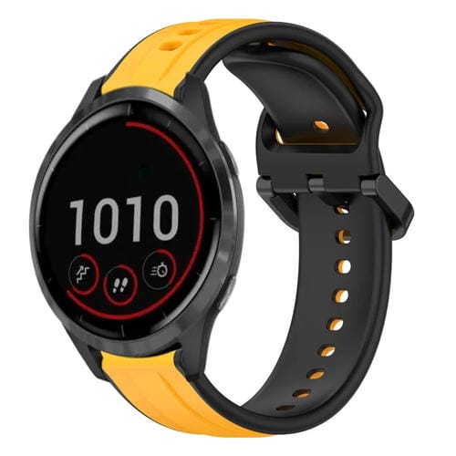 Correa de Silicona para Garmin Vivoactive4 22mm con Bucle Convexo (Amarillo + Negro)