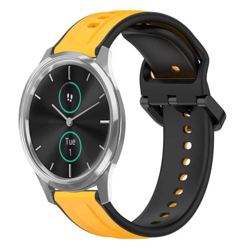 Correa de Silicona para Garmin Vivomove Luxe 20mm con Bucle Convexo (Amarillo + Negro)
