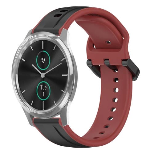 Correa de Silicona para Garmin Vivomove Luxe 20mm con Bucle Convexo (Negro + Rojo)