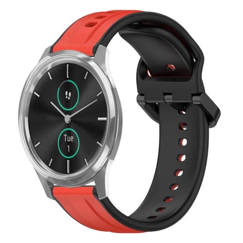 Correa de Silicona para Garmin Vivomove Luxe 20mm con Bucle Convexo (Rojo + Negro)