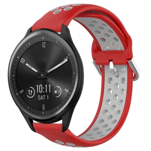 Banda de Reloj de Silicona Deportiva para Garmin Vivomove Sport 20mm Transpirable Perforada (Rojo + Gris)
