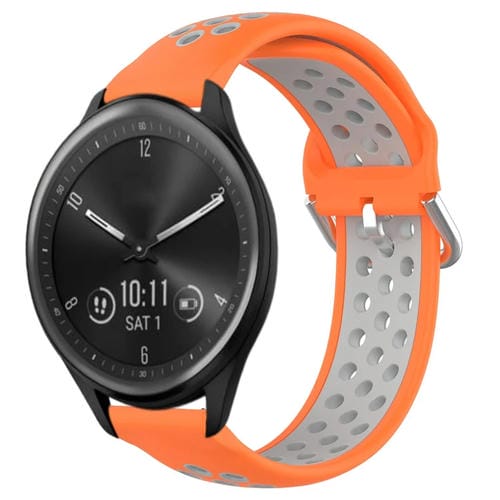 Banda de Reloj Garmin Vivomove Sport 20mm Silicona Deportiva Transpirable Perforada (Naranja + Gris)