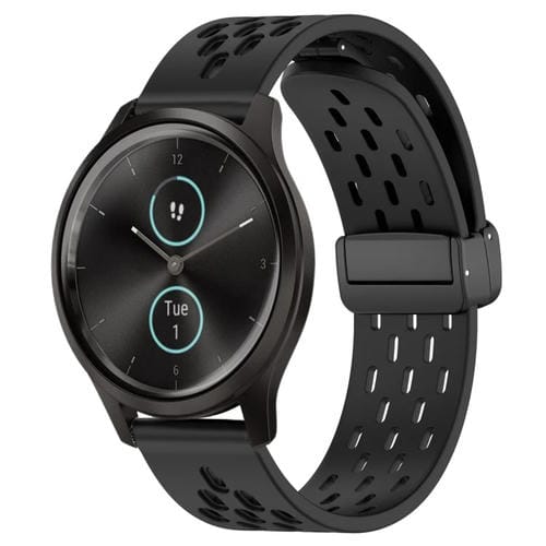 Correa de Reloj para Garmin Vivomove Style silicona con cierre magnético plegable 20mm (Negro)