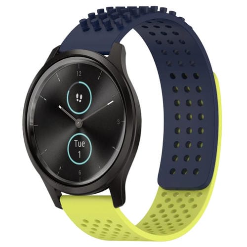 Correa de Silicona para Garmin Vivomove Style 20mm con Puntos 3D Transpirables (Azul Medianoche + Verde Lima)