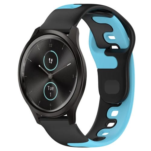 Correa de Reloj para Garmin Vivomove Style de Silicona Doble Color 20mm (Negro + Azul)