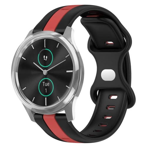 Correa para Reloj Garminmove Luxe 20mm Silicona Dos Colores (Negro + Rojo) con Hebilla de Mariposa