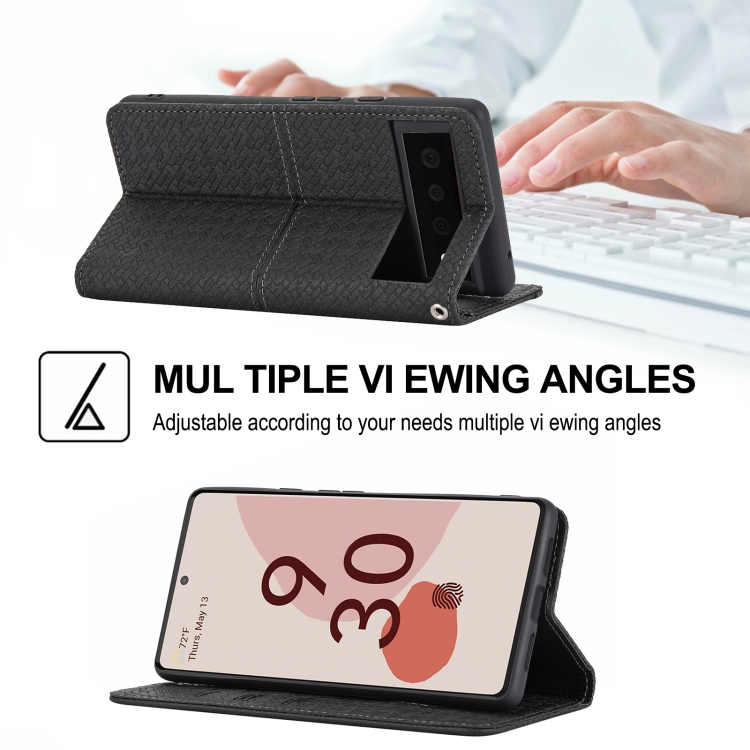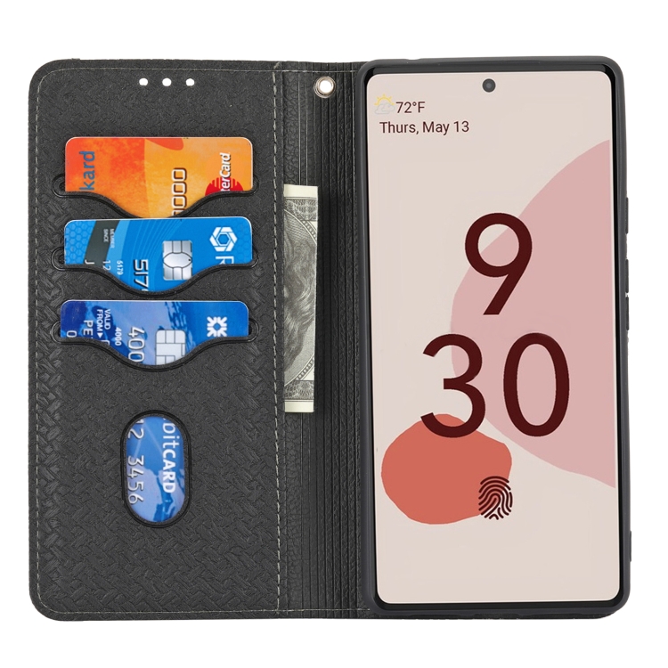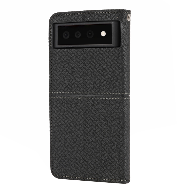 Para Google Pixel 6 Pro Woven Texturing Stitching Magnetic Horizontal Flip PU Funda de cuero con soporte y ranuras para tarjetas y Filtera y Lanyard (Negro)
