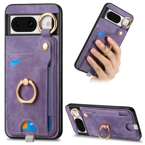 Funda para Google Pixel 8 con Bolsa para Tarjeta, Anillo y Lazo para Colgar (Púrpura)