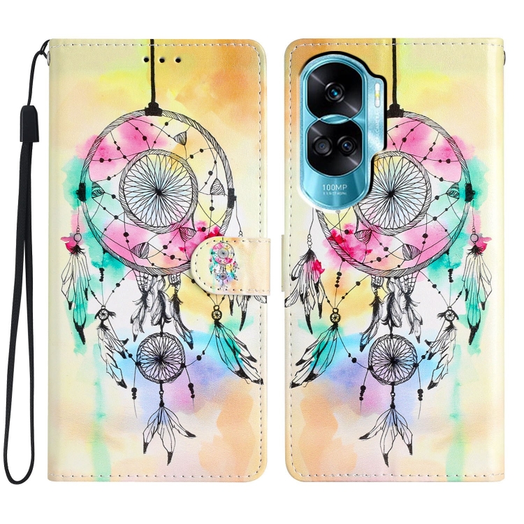 Funda de Cuero para Honor 90 Lite con Dibujo Coloreado Atrapasueños